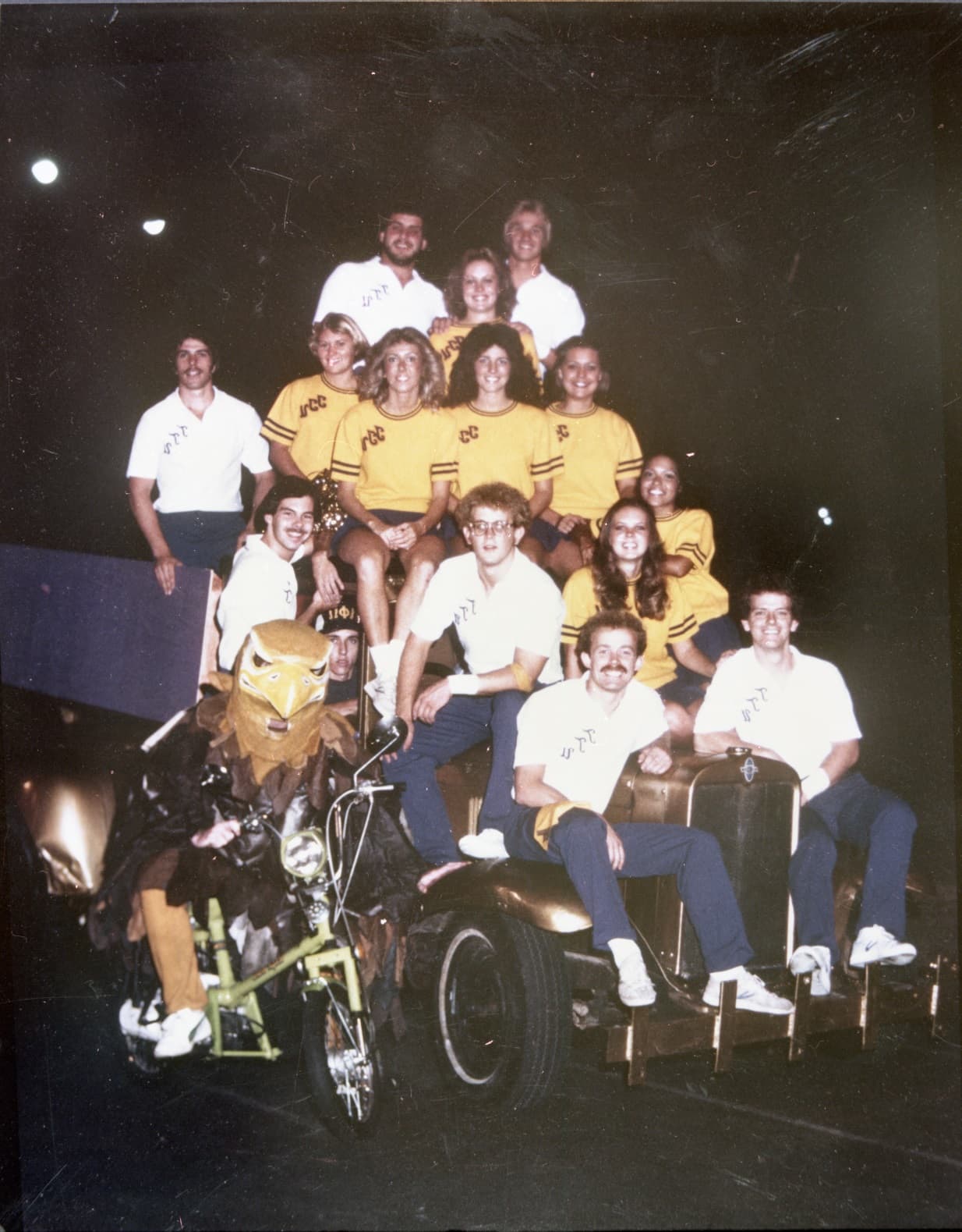 Pep truck that drove around Overall Field following each Eagle score from 1966 until 1993. Also, a term used to refer to our athletic opponents during the ‘50s and ‘60s. Fans would yell, “Eagle bait, eagle bait,” as the opposing team took the field.