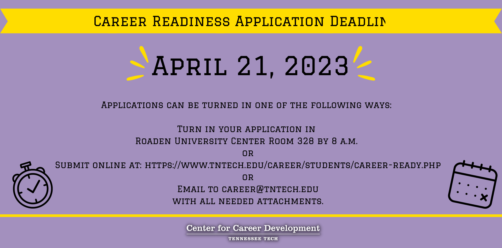 Throughout the year, the Center for Career Development offers many events, workshops, career fairs, meet-ups, and more. Below, you'll find event calendars for upcoming Career Readiness, Career Fairs, Careers n' Coffee, and Employer in Residence events.