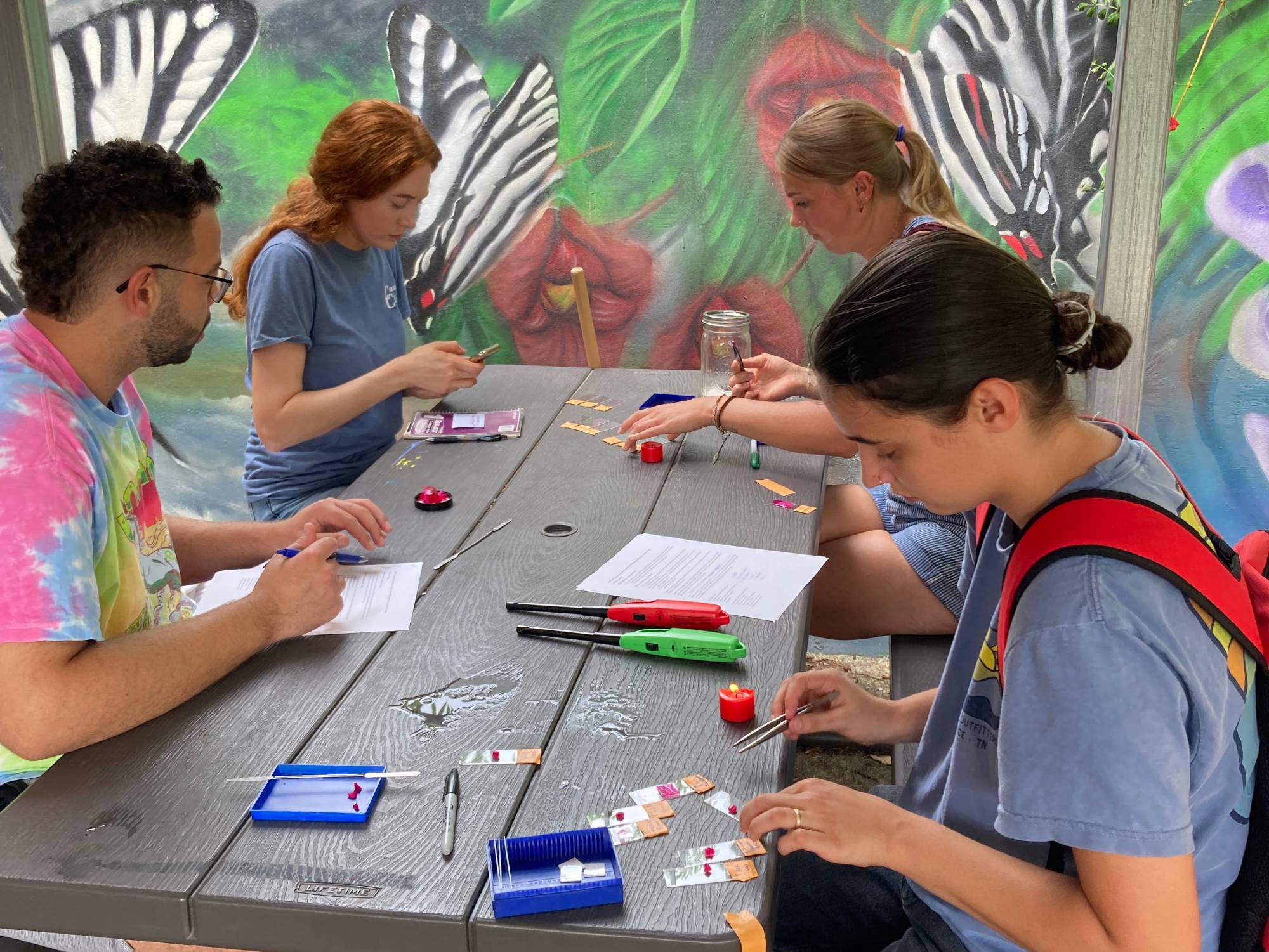 Some of our amazing volunteers! Josh Hall (Biology Dept faculty), Grayson Hall (2nd grade), Dan Combs (Biology faculty), Ann Meier (amazing member of the public!), and Emma Anderson (Env. Sci. student, class of 2026).