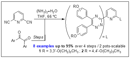 2. Tai. S., Williams, N. J.; Carrick, J. D.* Synthesis of bis-1,2,4-triazines via telescoped condensation of [1,10]-phenanthroline-2,9-dicarbonitrile with aromatic 1,2-dicarbonyls. Journal of Heterocyclic Chemistry 2016, 53, 307−312. View Article