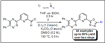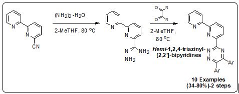 7. Downs, R. P.; Chin, A.-L.; Dean, K. M.; Carrick, J. D.* Synthesis of functionalized hemi-1,2,4-triazinyl-[2,2’]-bipyridines via telescoped condensation of [2,2']-bipyridinyl-6-carbonitrile. Journal of Heterocyclic Chemistry 2017, 54(6), 3008−3014. View Article
