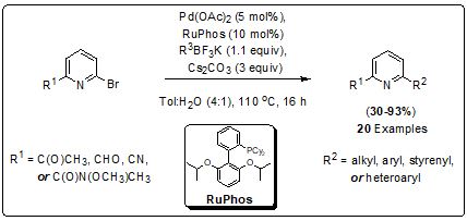 4. Chin, A.-L.; Carrick, J. D.* Modular approaches to diversified soft Lewis basic complexants through Suzuki-Miyaura cross-coupling of bromoheteroarenes with organotrifluoroborates. Journal of Organic Chemistry 2016, 81, 1106−1115. View Article