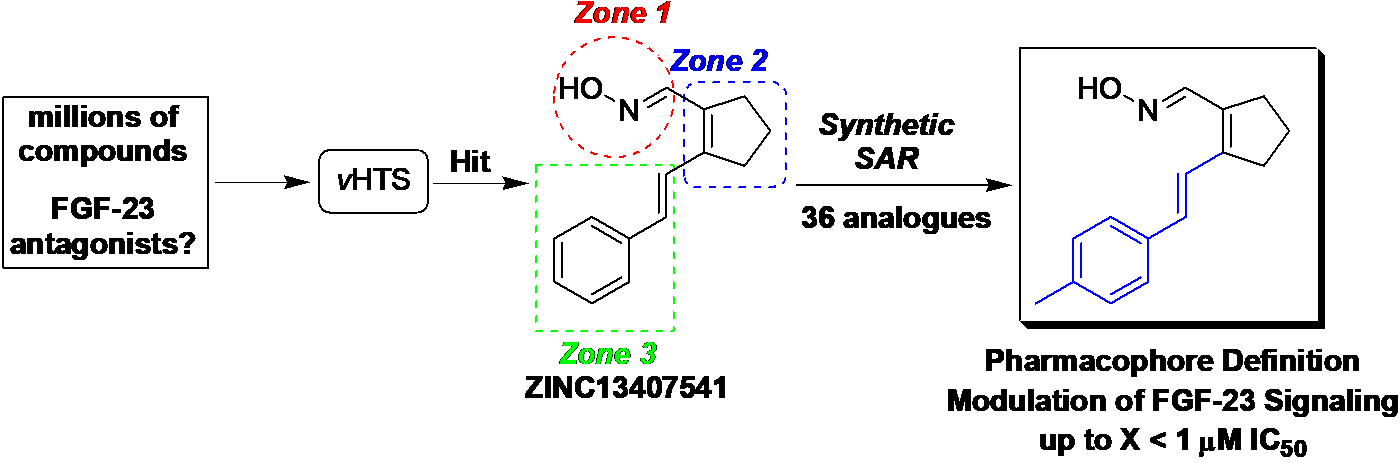18. Downs, R. P.; Xiao, Z.; Ikedionwu, M. O.; Cleveland, J. W.; Chin, A.-L.; Cafferty, A. E.; Quarles, L. D.; Carrick, J. D.* Design and development of FGF-23 antagonists: Definition of the pharmacophore and initial structure-activity relationships probed by synthetic analogues. Bioorganic and Medicinal Chemistry 2021, 29, 115877. DOI: 10.1016/j.bmc.2020.115877. View article.