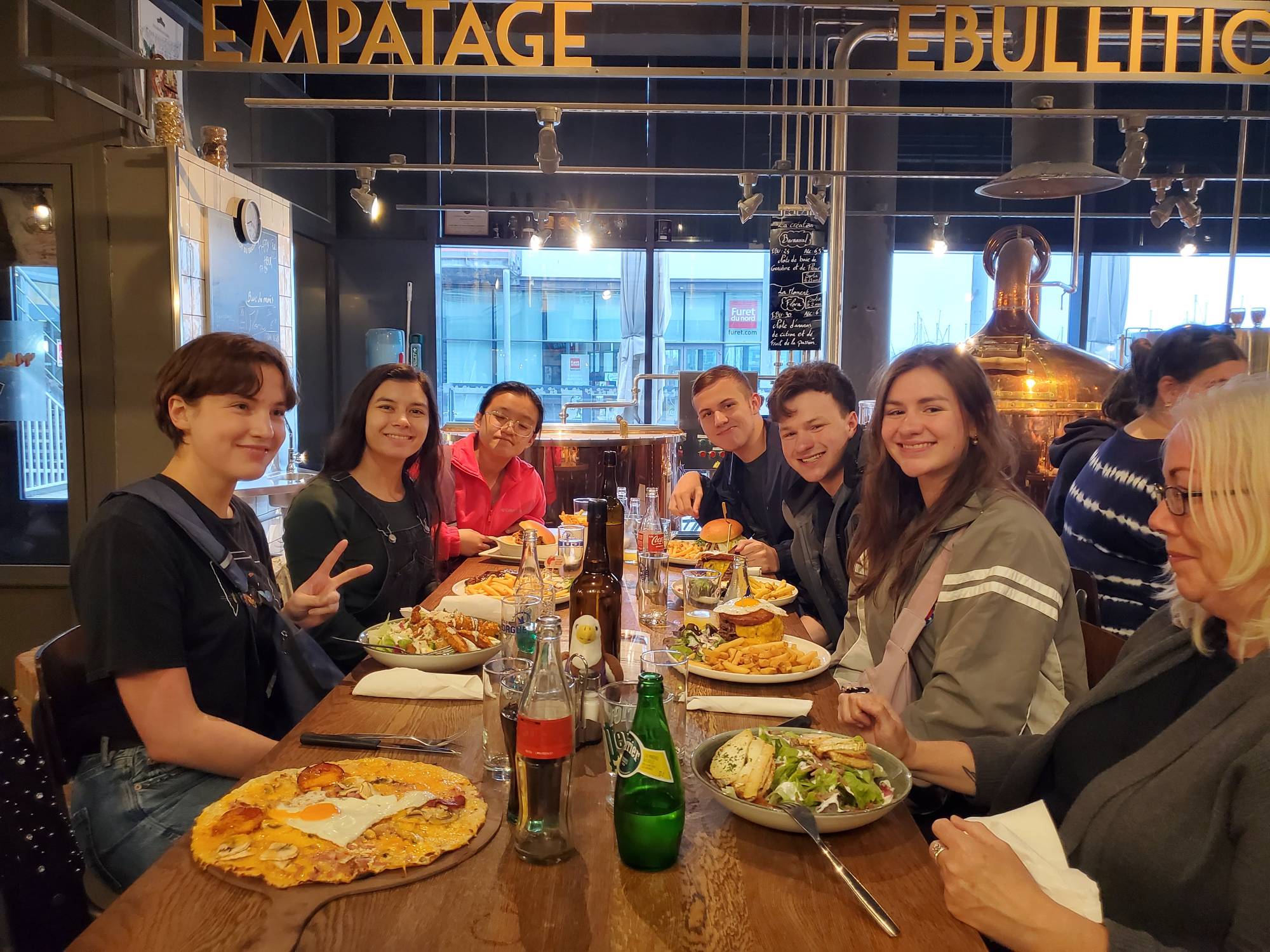 Buffet-style breakfasts were included at each hotel. Several group meals were planned in various types of restaurant (local, famous chain, buffet, gastronomic, etc.) but students were free for lunch or dinner most of the time. They could go to restaurants, cafés, fast food, or sandwich shops or buy food in the local small supermarkets.