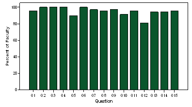 The CAT instrument was designed to measure those components of critical thinking and problem solving that faculty across disciplines think are most important. The graph below shows the percent of faculty that think each question is a valid measure of critical thinking. These evaluations include a wide variety of disciplines from six institutions involved in a recent NSF project to evaluate and refine the instrument.