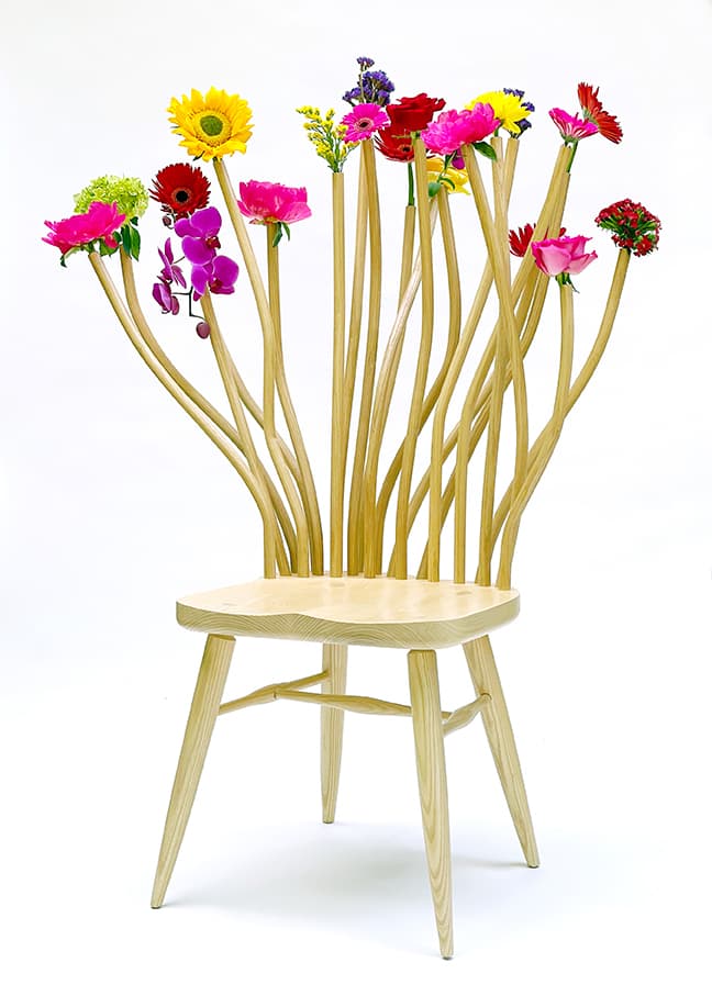 seating or embedding fresh cut flowers to add aroma), Evelyn uses furniture’s inherent