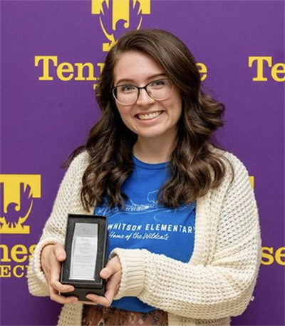 Current P-12 and Future EducatorsCurrent Educators Recipient School Elementary Educator Margaret Maxwell Capshaw Elementary Middle School Educator Erin Stratton Prescott South Middle School High School Educator Tyler Thompson Powell High School Art Educator Brouquelle Deck Wallace A. Smith Elementary Music Educator Jon Oliver Upperman High School Physical Education Hannah Sliger Sycamore Elementary Special Education Kelly Jones Hardin Valley Elementary Librarian Amanda Mullinax DeKalb West Elementary Early Childhood Educator Teena Hodges Woodland Park Elementary English as a Second Language Tina Francis Jere Whitson Elementary Administrator Grant Swallows Warren County Schools School Counselor Allyson Evans Sycamore Elementary Future Educators Recipient Major Graduate Macrae Thomsen Exercise Science Undergraduate Michael Rhoades Exercise Science - 2020-2015