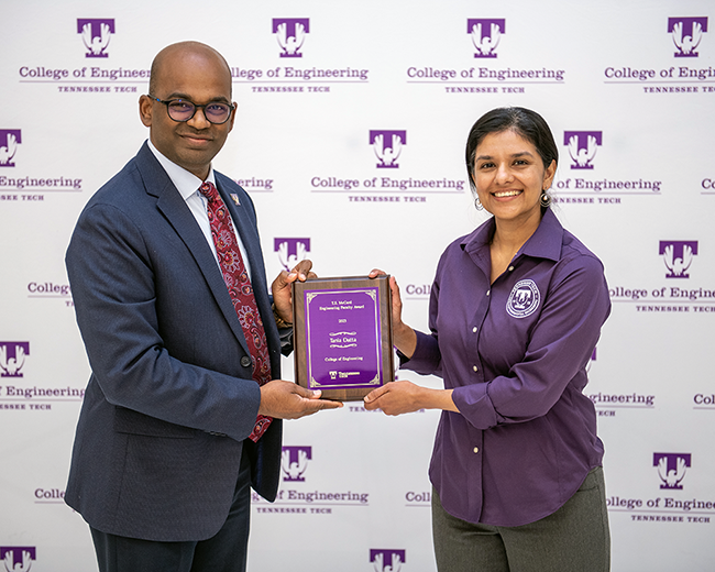 “Dr. Datta has proven to be a major champion for Tennessee Tech students,” said Joseph C. Slater, dean of the College of Engineering. “Her passion for teaching and commitment to student success is inspiring and unmatched. She succeeds in making learning enjoyable by bringing her passion and enthusiasm for her field to the classroom with creative, project-based instruction and hands-on learning. She is an exceptional educator and we are grateful for all she has done and continues to do for her students and the community.”