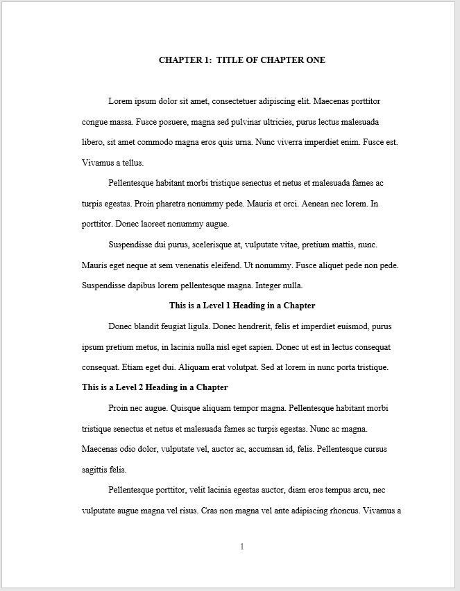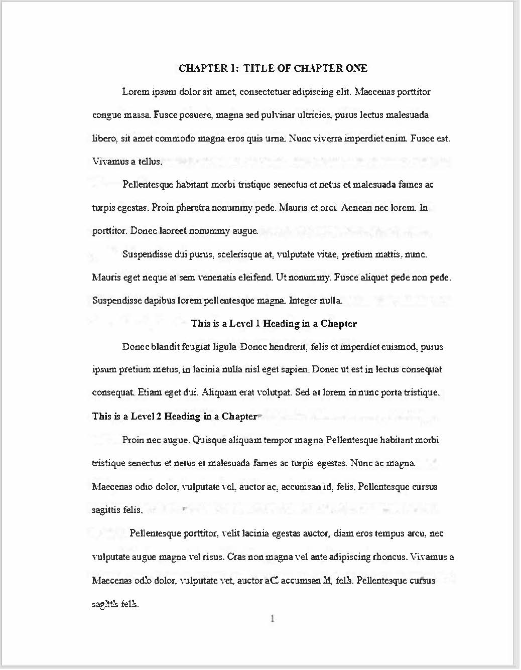 For the first chapter, type CHAPTER 1: TITLE OF CHAPTER (or Chapter 1: Title of Chapter) at the top of the page. Be sure to format each title as a chapter title heading; see the headings section above for instructions.