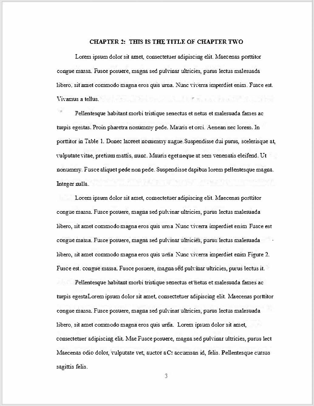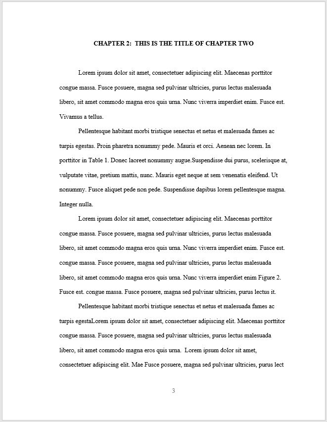 Always start a new chapter on a new page. Use the page break function to insert a blank page; do not use the Enter key multiple times.