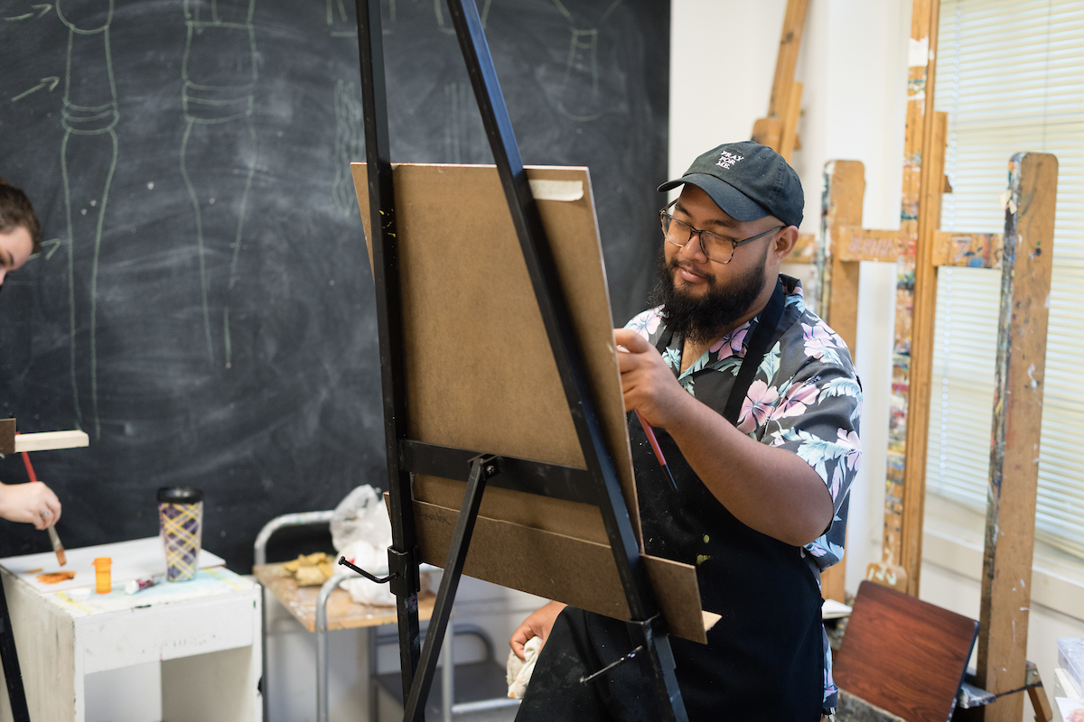 The Bachelor of Fine Arts concentration in painting is designed to prepare the student to become a fine artist. The integration of studio and lecture courses in the curriculum as well as activities and enrichment opportunities encourages the skills and concepts essential to the student’s growth as an artist. A broad spectrum of methods, ideas and conceptual problems, including still life, landscape and figurative studies, gives students experience with a variety of subjects. Students broaden their visual repertory and develop their skills through the study of color, space, shape, form, texture, surface and the physicality of paint. Advanced courses and the development of the student artist’s personal aesthetic allow the student to create an individual visual “language.”