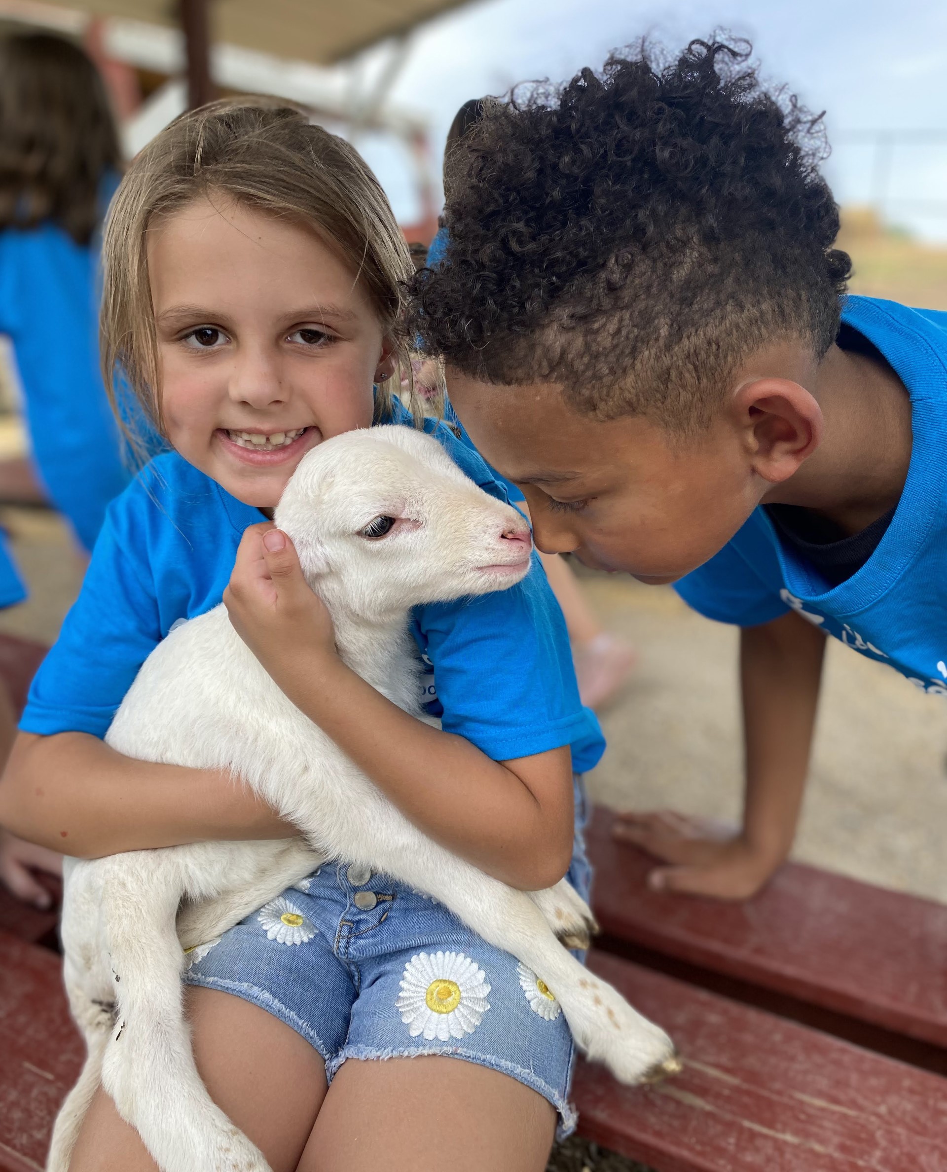 Freedom School scholars pet a baby goat during a field trip to Amazin' Acres of Fun