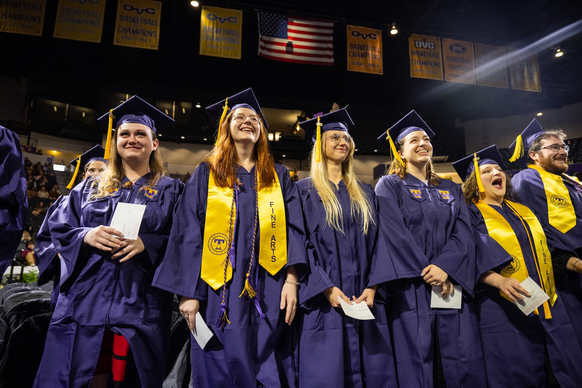 Graduates of Tech's College of Fine Arts prepare to receive their degrees.
