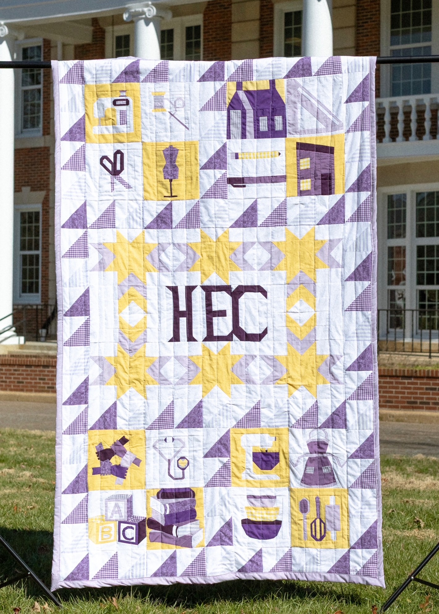 Parks’ completed quilt, pictured on the front lawn of Oakley Hall, home to Tech’s