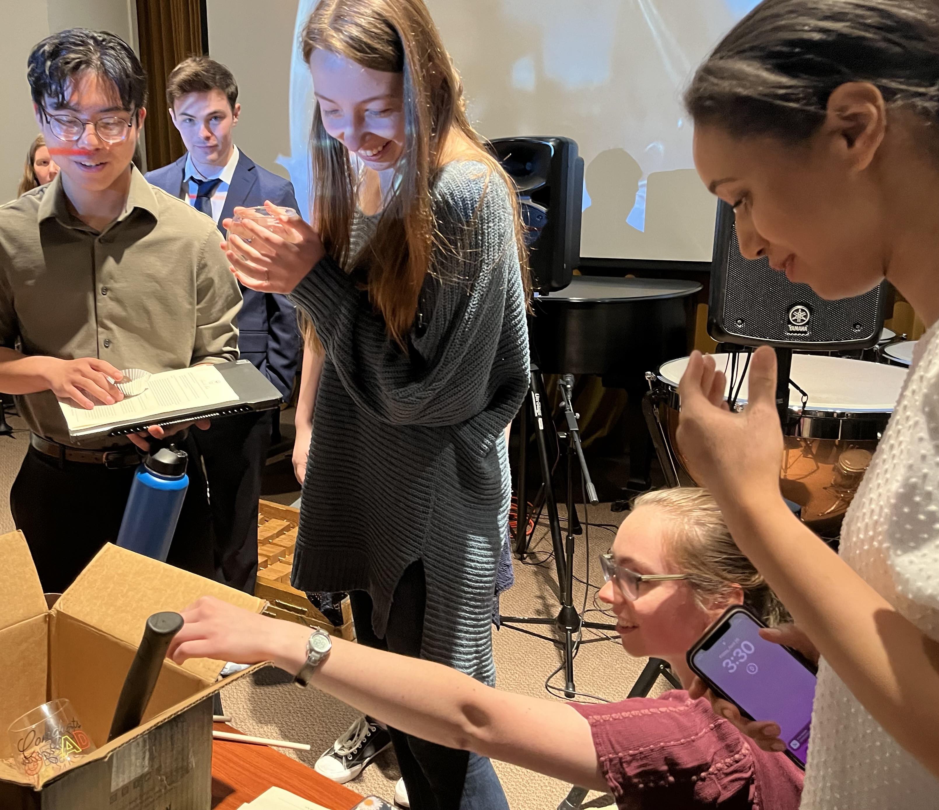Students in the “Sounds of Science” honors colloquium prepare for their end-of-semester