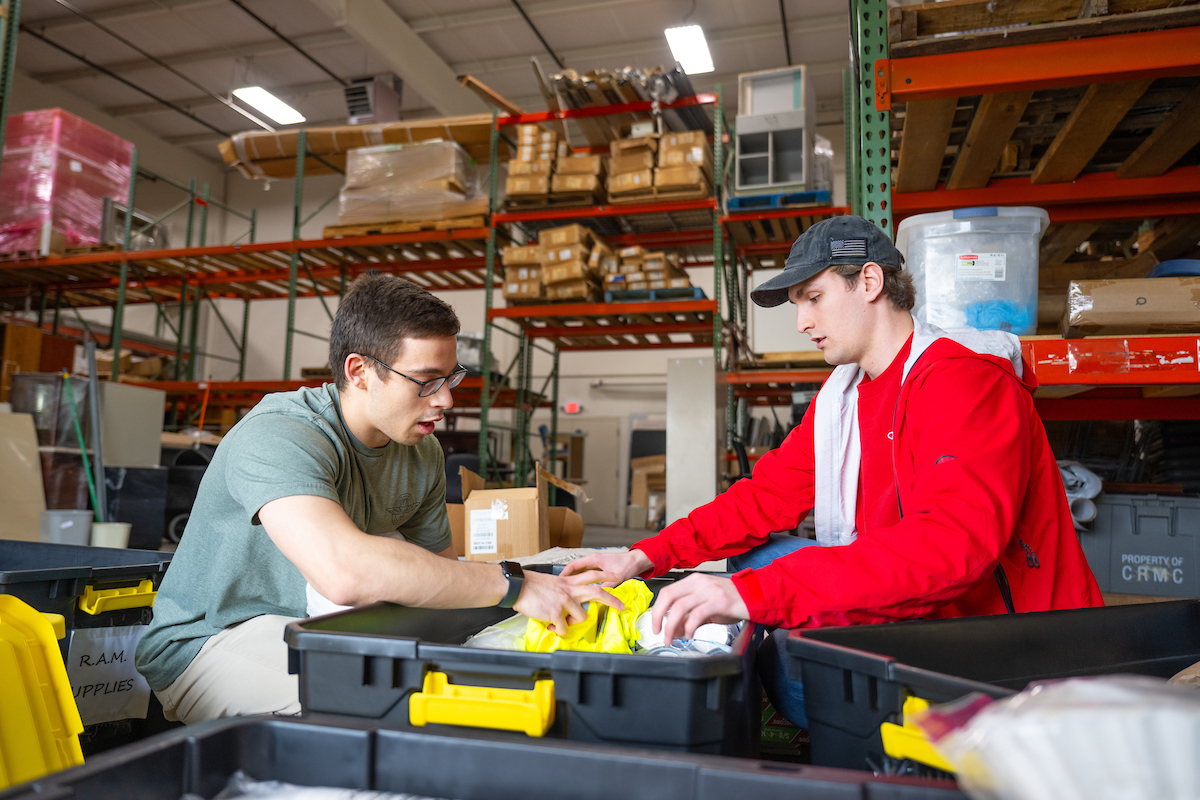 Tech students sorting supplies for the Upper Cumberland RAM clinic set for March 16-17