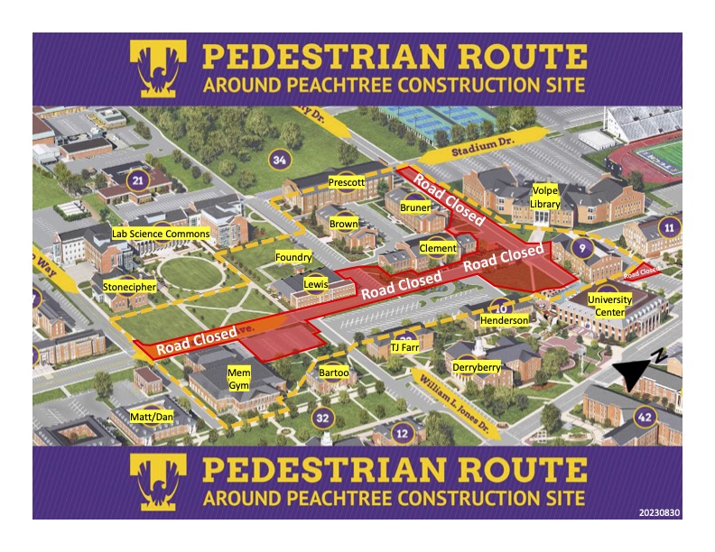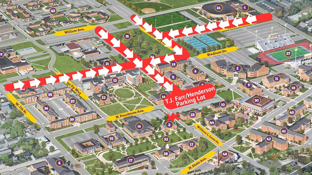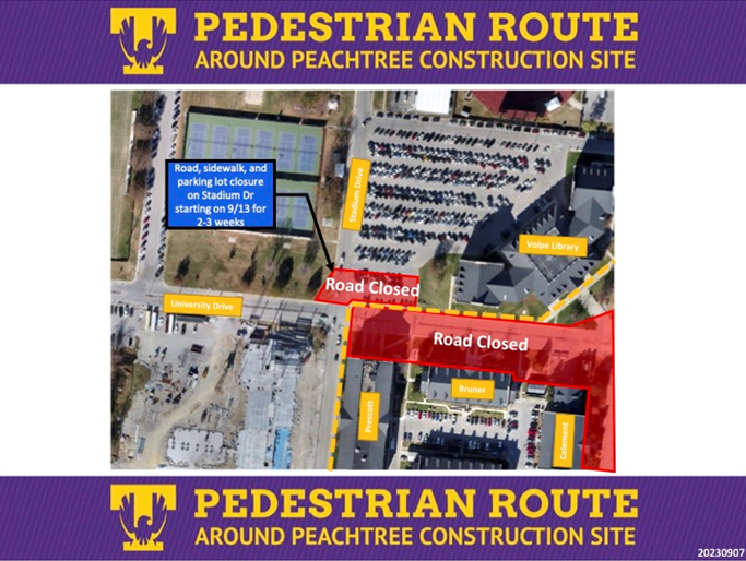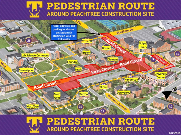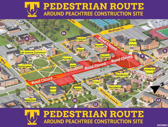Please be advised that parking along North Peachtree Avenue near the East Stadium will be closed from Friday, August 16, through Thursday, December 12.