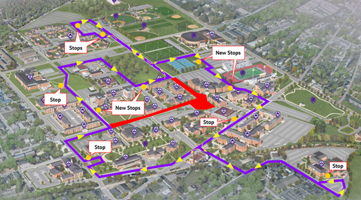 We've added a new Wednesday evening stop downtown so students can enjoy local shops and restaurants. The campus shuttle route and stop locations are available in the PassioGo! app. You can also find this information in each shuttle shelter, on every shuttle bus, and on the Parking and Transportation webpage.
