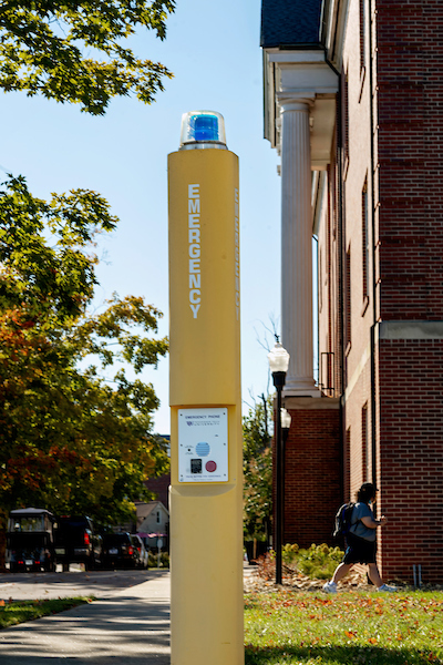Blue light emergency telephones are strategically placed around the campus. When activated,