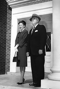 He oversaw the integration of the university in the 1960s. Under his tenure, the university’s name changed from Tennessee Polytechnic Institute to Tennessee Technological University. President Derryberry also is responsible for some of Tennessee Tech’s landmarks and best stories, including the golden eagle that now sits on top of Derryberry Hall and Dammit the dog. In 1952, three students stole the eagle statue from a local hotel to raise school spirit ahead of a football game against MTSU. The original owner eventually agreed to donate the bird to the university. Derryberry sent him $500 as compensation. Tennessee Tech legend has it that during a speech outside, a stray dog wandered past the president. When it wouldn’t move, Derryberry yelled “dammit” at it and later said that was the dog’s name. Dammit the dog is memorialized on the main quad. Under Derryberry’s watch, the U.S. Army established the nation’s first complete Signal Corps ROTC unit. In 1951, it was the largest Signal Corps unit in the nation. The ’50s were great years for Tennessee Tech athletics, with the football team winning its first Ohio Valley Conference championship in 1952. The football field and basketball arena are named for two coaches who served under Derryberry, P.V. “Putty” Overall and Hooper Eblen. Derryberry and his wife, Joan, left their marks on campus. Derryberry Hall is Tennessee Tech’s most recognizable building. Joan Derryberry wrote the Tennessee Tech hymn, and an art gallery bears her name. The couple established the prestigious Derryberry Award, which is given annually to a graduating senior who has exhibited characteristics that demonstrate potential for future service and effective leadership in American society.