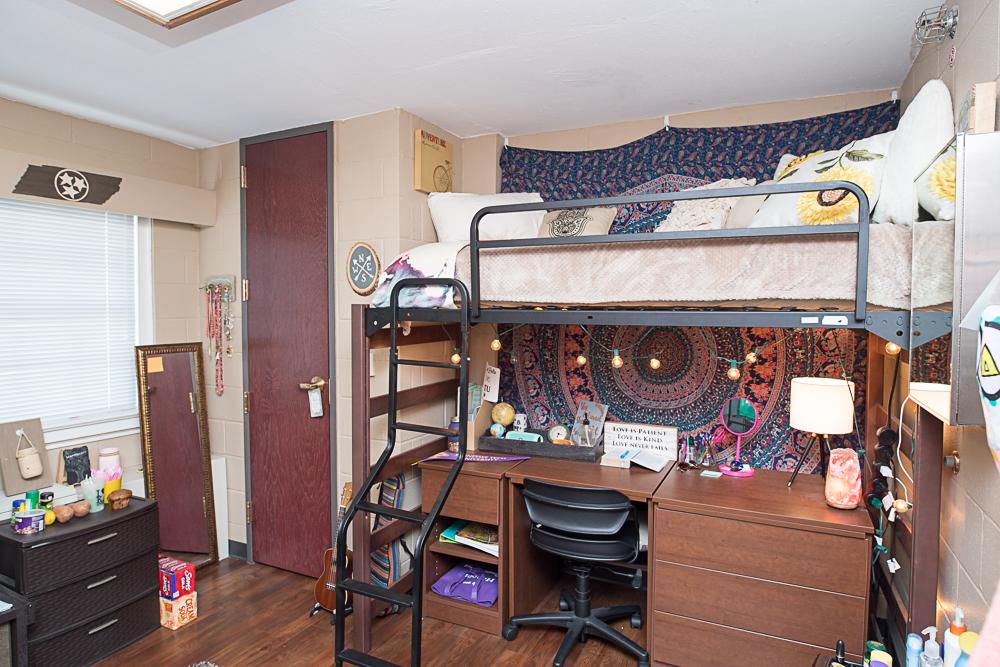 Optional: Coaxial CableChair Rolling Chair provided Closet Internal Measurements: Approx. 2 Feet Deep x 3 Feet 8.5 Inches Wide Desk Has Top Hideaway Table for More Surface Space Dresser Three Drawers with Top Hideaway Table for More Surface Space Electrical Outlet(s) Varies by room. Typically, 3 Receptacles with 2 plugs each. HVAC Ability To Control Temperature 68 To 75 Degrees Internet Wireless (Wi-Fi) Internet Only