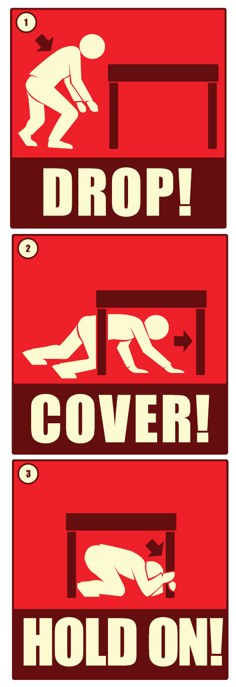 - Do NOT attempt to exit the building during active shaking. Wait until the shaking has stopped. Falling materials can be deadly.