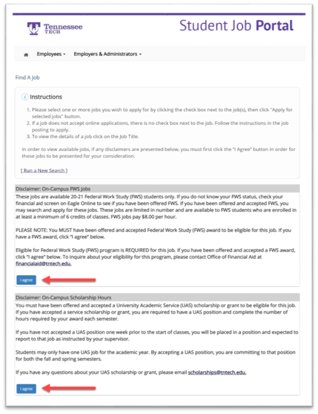 After you’ve successfully reviewed the applicable disclaimer statement(s), you will be required to click the ‘I agree’ button(s) before any available jobs of that Job Type will be presented.