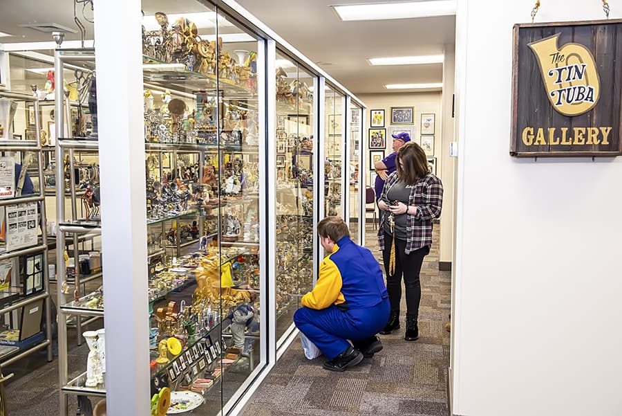 The Collection contains over 2,000+ tuba figurines and assorted tuba collectibles and 100+ tuba oriented art works and items of historical interest pertaining to Professor Morris and the first 50-year history of the Tennessee Tech Tuba Ensemble. The displays of the collection are in three basic categories: